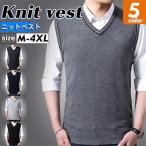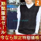 ニットベスト メンズ Vネック 無地 リブ編み 洗える ノースリーブ セーター スクールベスト ウォッシャブル ビジネス 仕事用 制服 通勤 通学