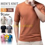 ニット セーター メンズ サマーニット 半袖ニット ニットTシャツ 大人 おしゃれ 無地 半袖 クルーネック 父の日
