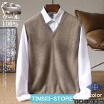 ニット ベスト 薄手 ウール100% メンズ ビジネス セーター 秋冬 Vネック 無地 シンプル 定番 トップス 袖なしニット ジレ カジュアル 裾リブ 30代 40代 50代