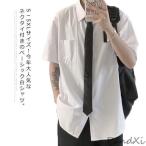 S−5XLサイズ!シャツ メンズ レディース 白シャツ 半袖シャツ 半袖 無地シャツ スクールシャツ ネクタイ付き 通学 高校生 ユニセックス カップ