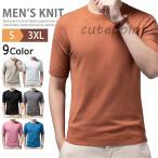 ニット セーター メンズ サマーニット 半袖ニット ニットTシャツ 大人 おしゃれ 無地 半袖 クルーネック 父の日