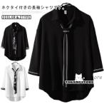 ネクタイ付き 長袖シャツ メンズ シャツ トップス カジュアルシャツ 黒 大きいサイズ 白シャツ 制服 メンズ ゆったり 秋服 スクールシャツ 春物