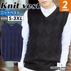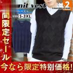 ニットベスト メンズ Vネック 無地 リブ編み ダイヤ柄 チェック柄 洗える ノースリーブ スクールベスト ウォッシャブル ビジネス 仕事用 制服