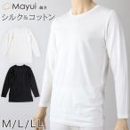 メンズ シルク&コットン 長袖 丸首 シャツ M〜LL (白 長袖シャツ 絹 綿 綿混 絹混 Tシャツ 無地) (送料無料)