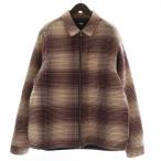ステューシー STUSSY ボアジャケット 長袖 ロゴ ワッペン ジップアップ 茶 ブラウン S メンズ
