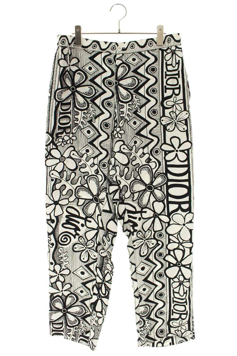 ディオール DIOR ×ショーン・ステューシー サイズ:52 033B151A4979 総柄シルク パジャマロングパンツ(ホワイト×ブラック)【601152】【SB01】【メンズ】【中古】bb87#rinkan*B