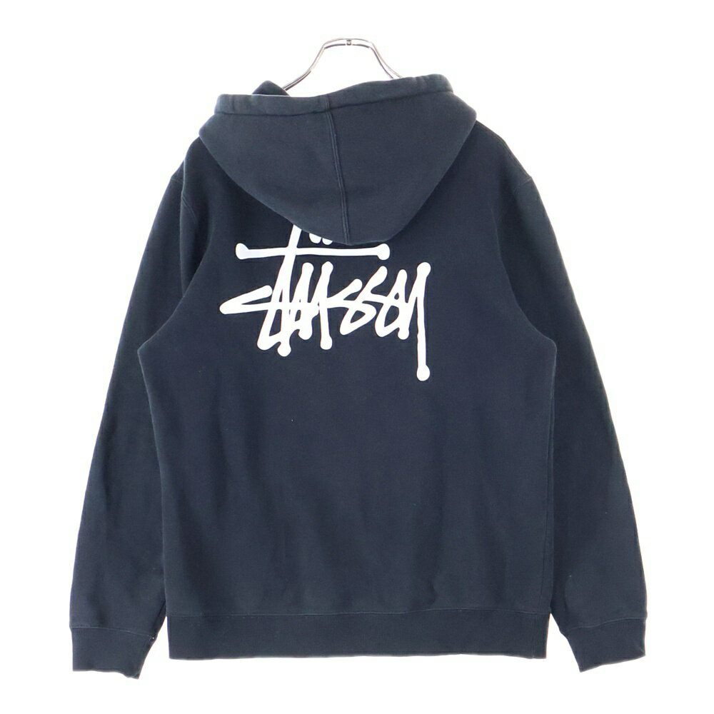 ステューシー STUSSY プリント パーカー スウェット 裏起毛 ネイビー XL メンズ