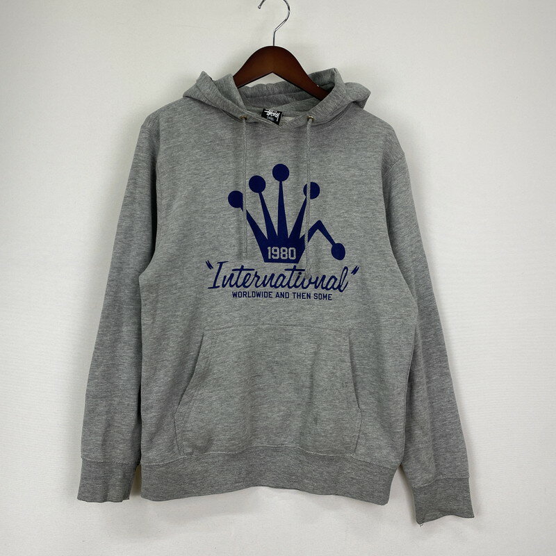 【中古品】【メンズ】 STUSSY ステューシー CROWN PULL OVER HOODIE クラウン プルオーバー フーディ 長袖 トップス パーカー 142-251125-yo-09-tei サイズ:S カラー:グレー 万代Net店