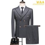 タキシードスーツ 3ピーススーツ メンズスーツ ストライプ ダブルボタンスーツ 結婚式 二次会 成人式 卒業式 春秋冬 ビジネス フォーマルスーツ