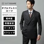 【スーツスクエア】メンズ スーツ ダブルブレスト ストレッチ 6つボタン 尾州 モクロディジャージー 無地 TR28 グレー系