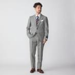 【洋服の青山】ツーパンツ プレミアム ウール100% スーツ メンズ スリム 秋冬用 グレー系 織柄 Super110's ストレッチ 伸縮性 総裏 ビジネス 50代 HILTON