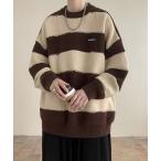 セーター ニット 新色追加 オーバーサイズ ウール混ブークレー段染めグラデーションボーダー柄クルーニットセーター メンズ レディース
