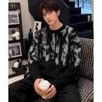 セーター ニット カモフラ柄ジャガードクルーネックウォッシャブル 洗えるニットセーター メンズ レディース