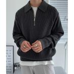 セーター ニット 「帯電防止/ウォッシャブル/アンチピリング」 バルキー片畦編み オーバーサイズ ハーフジップ ニット プルオーバー