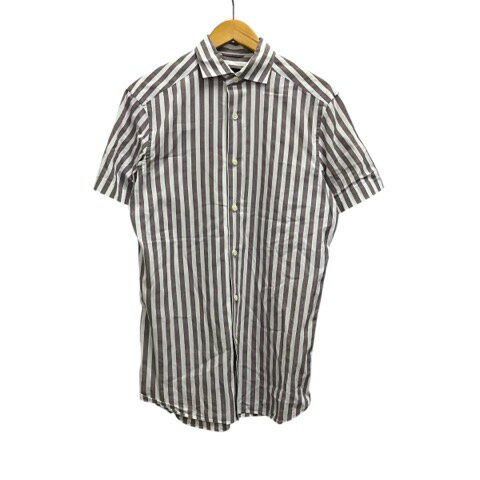 【中古】エルメネジルドゼニア Ermenegildo Zegna シャツ 半袖 ストライプ 紫 パープル 白 ホワイト メンズ 【ベクトル 古着】 251101