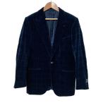 美品 Ermenegildo Zegna エルメネジルドゼニア ブラックウォッチ ベルベット テーラードジャケット サイズ46 ネイビー メンズ 古着 中古