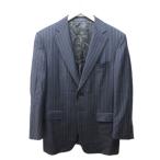 エルメネジルドゼニア テーラードジャケット アウター イタリア生地 ストライプ柄 メンズ フリーサイズ ブラック Ermenegildo Zegna 【中古】