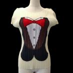 #spc プリーツプリーズ PLEATSPLEASE Tシャツ カットソー 3 クリーム色 タキシード ラメ 日本製 タグ付き 新品同様 レディース [829962]
