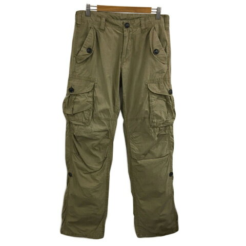 ティーケー タケオキクチ TK カーゴパンツ 裾にチェック柄裏地 ひざが立体裁断 無地 ストレート ポリエステル×綿 M グリーン 緑 メンズ