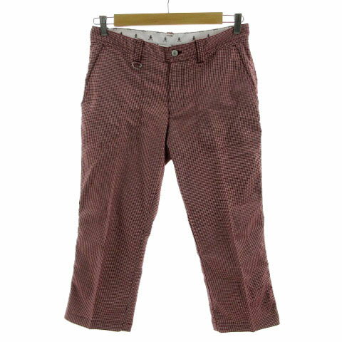 【中古】ティーケーミクスパイス タケオキクチ THE SHOP TK MIXPICE パンツ クロップド丈 ストレッチ シェパードチェック レッド系 エンジ ホワイト 白 L メンズ 【ベクトル 古着】 241129