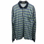 ダンヒル dunhill 薄手 ポロシャツ Tシャツ生地 ボーダー 長袖 イタリア製 ピュアコットン100% 38(97cm) ネイビー×グリーン 紺×緑 メンズ