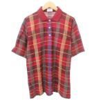 ダンヒル dunhill 美品 ポロシャツ 半袖 チェック ロゴ 薄手 Mサイズ 赤 レッド ■MET1 メンズ