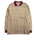美品 dunhill ダンヒル ゴルフバッグ柄 総柄 ポロシャツ カットソー 長袖 オールド ヴィンテージ ビンテージ サイズL ボルドー マルチ メンズ 古着 中古