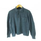 ダンヒル dunhill ニットポロシャツ 長袖 ウール ロゴ刺繍 チェック編み M 青 ブルー ターコイズ /CK4 ■GY18 メンズ