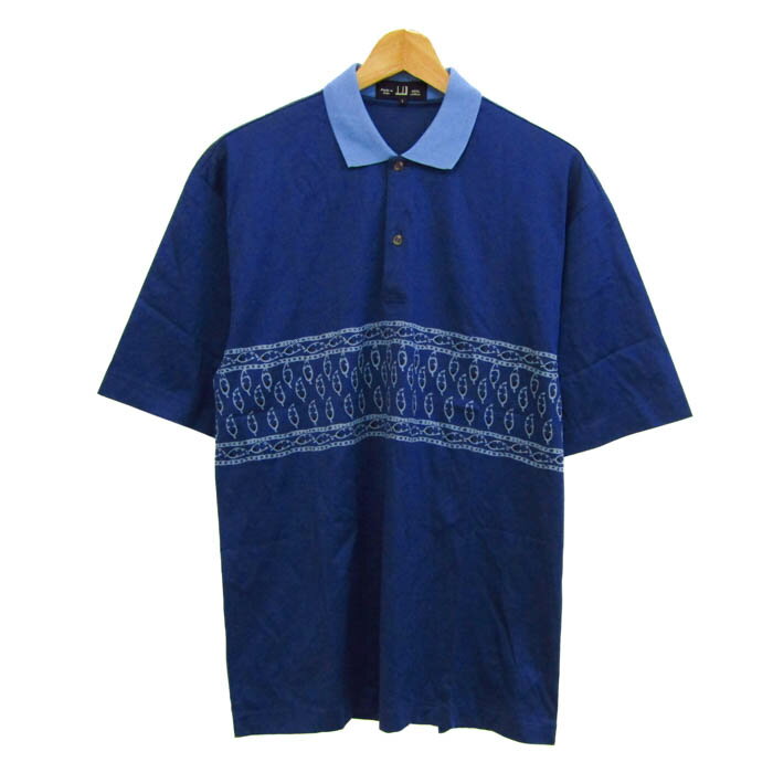 ダンヒル ポロシャツ トップス 半袖 ゴルフウエア イタリア製 メンズ Lサイズ 紺×水色 Dunhill 【中古】