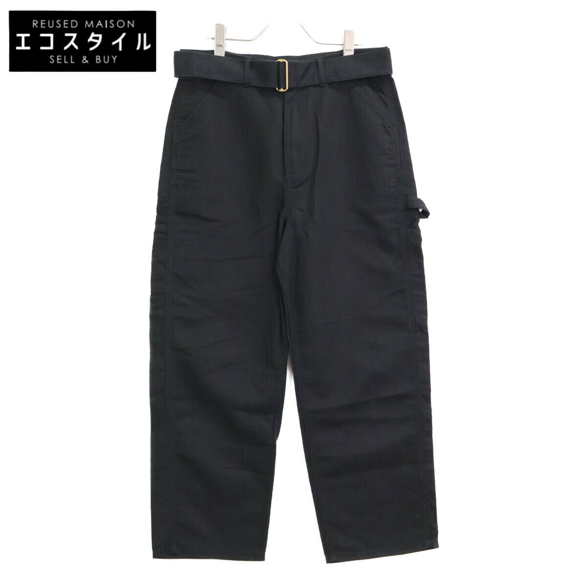 Dunhill ダンヒル 美品 国内正規 コットンリネン ウエストベルト ワイドカーゴパンツ ボトムス 46R ブラック メンズ 【中古】
