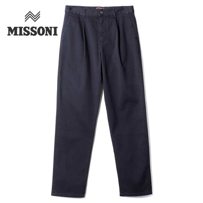 【55%OFF】MISSONI / ミッソーニ|コットンストレッチ1プリーツチノパンツ(US23WI09)|(ネイビー)| ボトムス スラックス コットンパンツ メンズ イタリア アウトレット