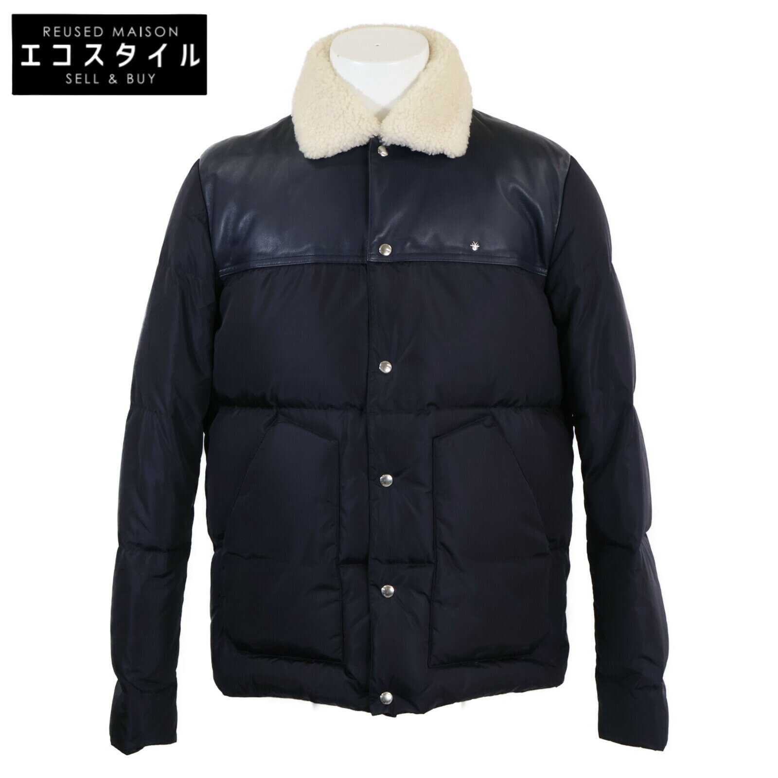 Dior HOMME ディオールオム 【国内正規】863C422H3830 ボアカラー ヨークラムレザー切替 ダウン ジャケット 50 ネイビー メンズ 【中古】