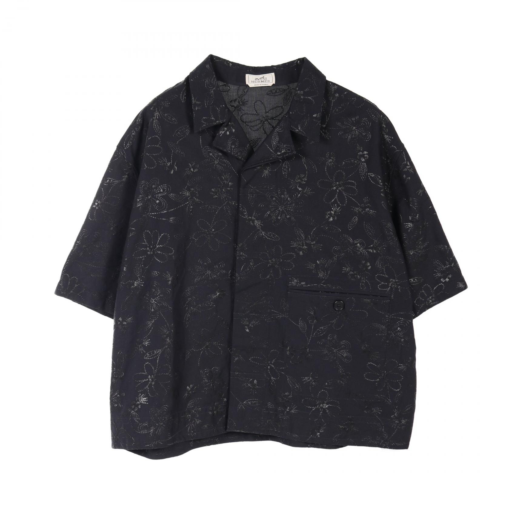 エルメス HERMES ショートスリーブ オーバーシャツ オックスフォード フルールテクニック 衣料品 トップス コットン ブラック系 【中古】