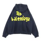 BALENCIAGA バレンシアガ テープロゴ ヴィンテージ加工 ジップアップフーディー パーカー ブラック 744451 T0VB1