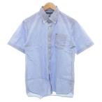 トミーヒルフィガー TOMMY HILFIGER ボタンダウンシャツ 半袖 ストライプ ロゴ刺繍 M 青 ブルー 白 ホワイト /GV メンズ