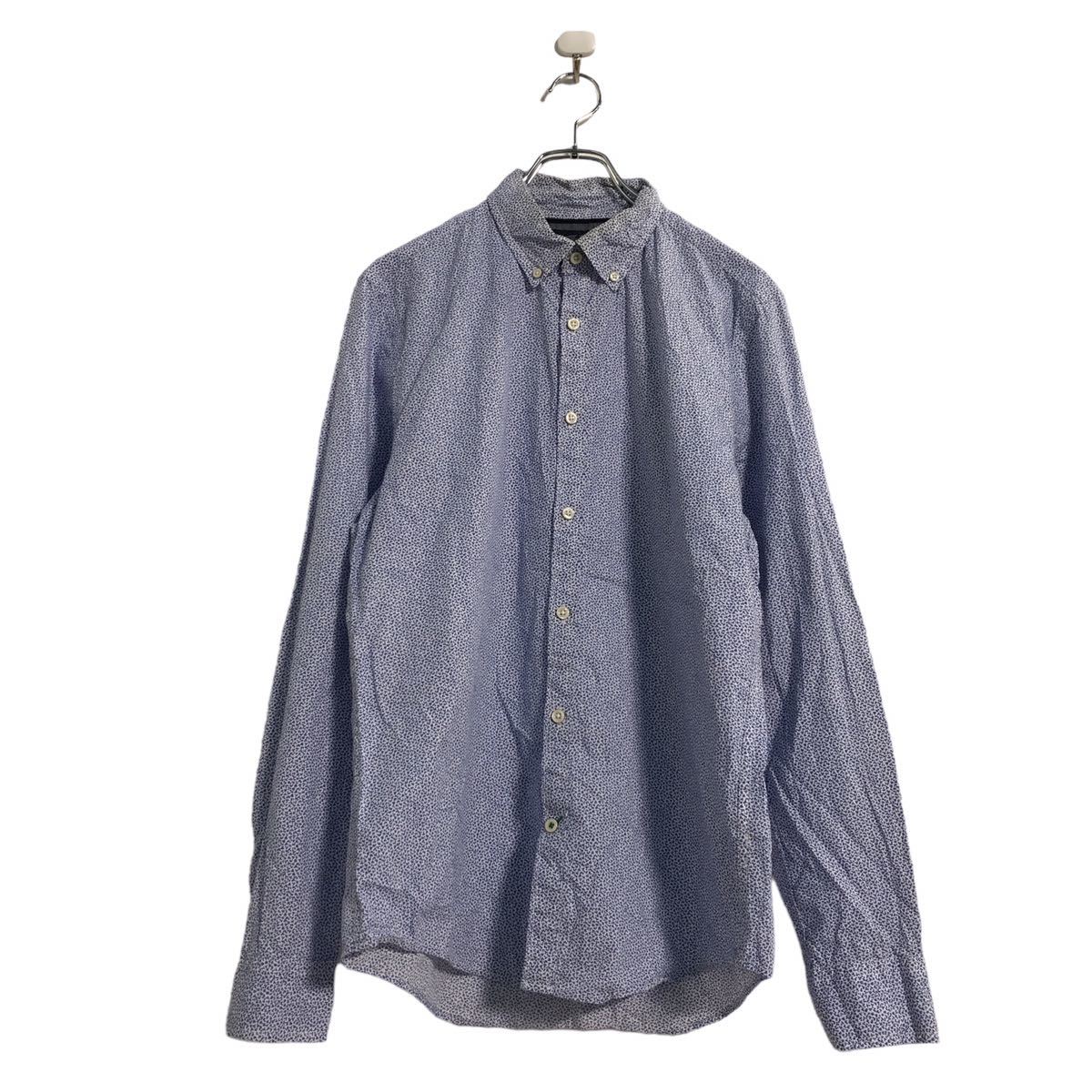 【中古】【古着】 TOMMY HILFIGER 長袖 柄 シャツ M ホワイト ブルー トミーヒルフィガー ボタンダウン 古着卸 アメリカ仕入 a509-6223