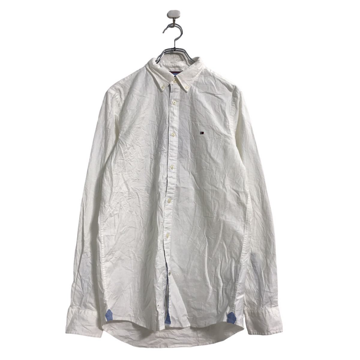 【中古】【古着】 TOMMY HILFIGER 長袖 無地シャツ XL ホワイト トミーヒルフィガー ボタンダウン ビッグサイズ ワンポイント 古着卸 アメリカ仕入 a701-5055