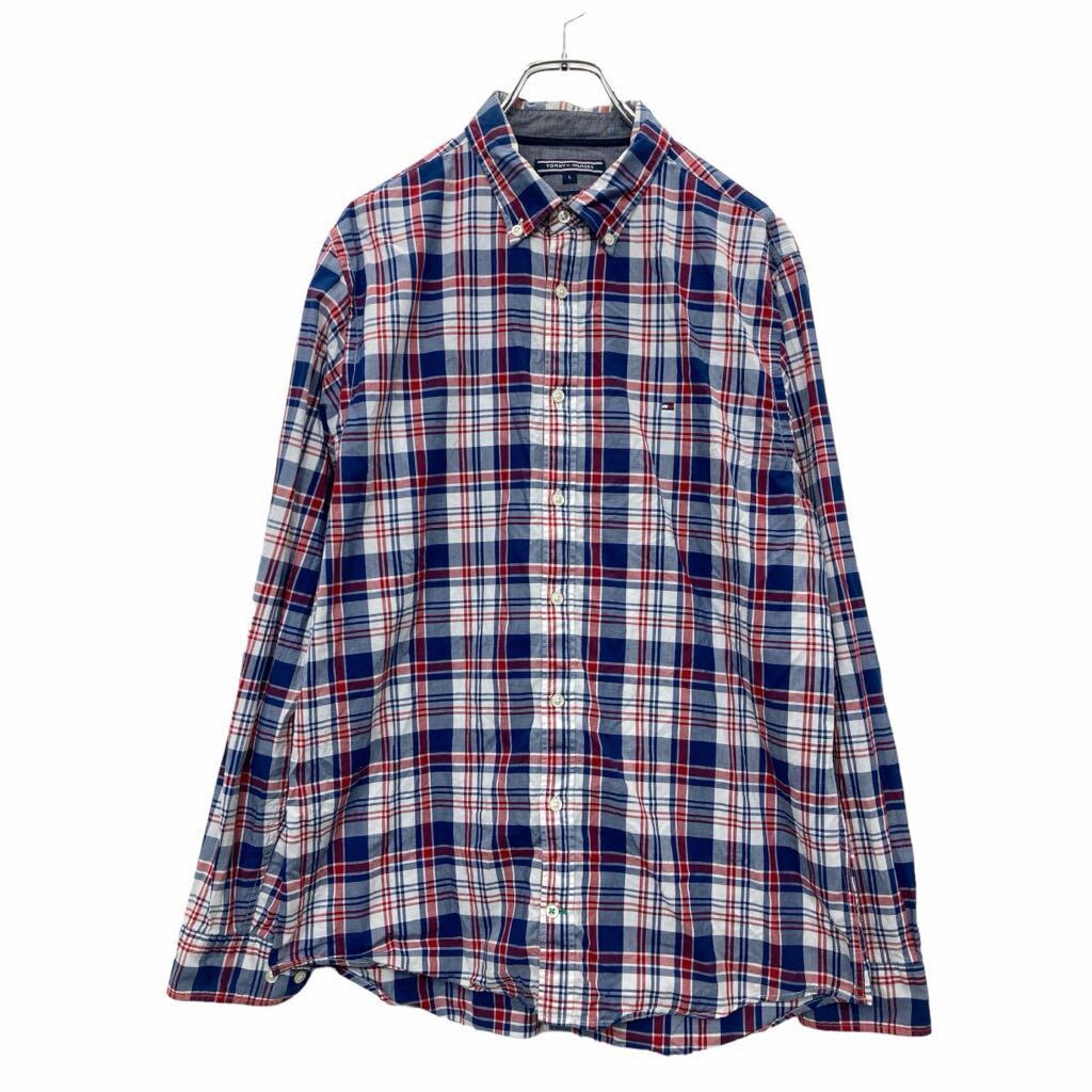 【中古】【古着】 TOMMY HILFIGER 長袖 シャツ L サイズ トミーヒルフィガー チェック柄 ダウンシャツ ブルー レッド 古着卸 アメリカ仕入 t2408-3195