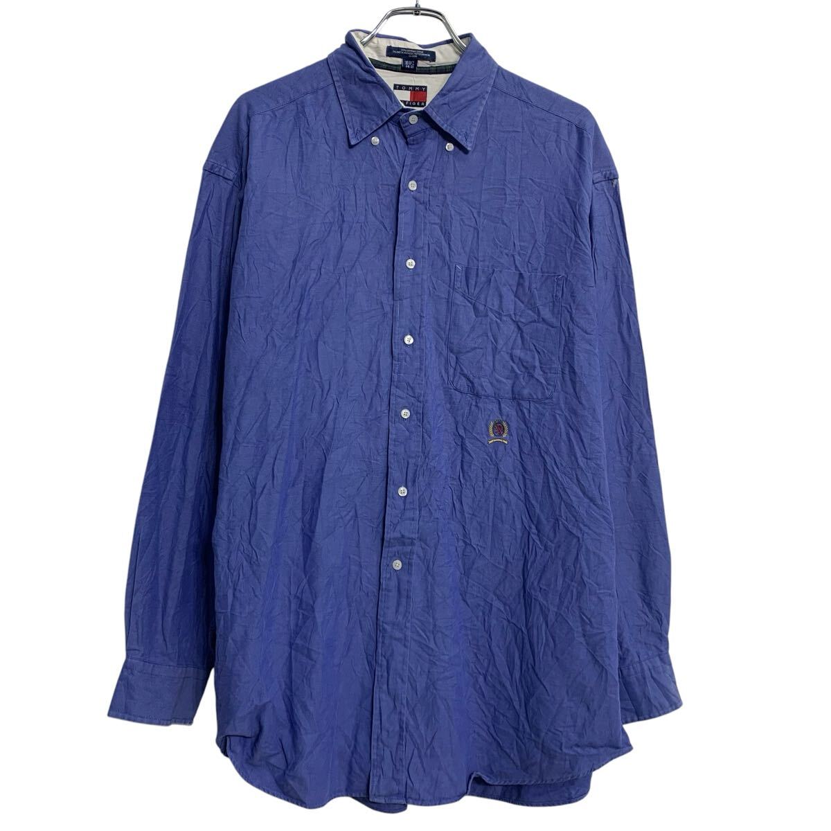 【中古】【古着】 TOMMY HILFIGER 長袖 無地シャツ 16 XL〜 ブルー トミーヒルフィガー ボタンダウン ビッグサイズ ロゴ 刺繍 古着卸 アメリカ仕入 a702-5019