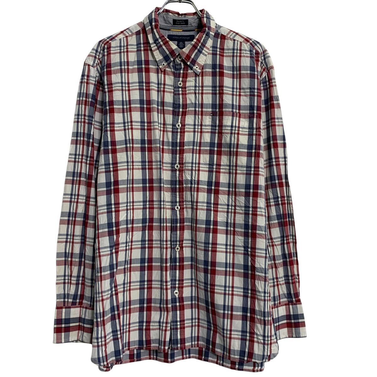 【中古】【古着】 TOMMY HILFIGER 長袖 チェックシャツ XL ホワイト レッド ブルー トミーヒルフィガー ボタンダウン ロゴ 古着卸 アメリカ仕入 a702-5510