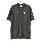 ナイキ NIKE ポロシャツ 鹿の子 ボーダー 半袖 ロゴ刺繍 ポケット無し 裾の両側にスリット 綿100% L グレー系 グレー系×黒×白 メンズ