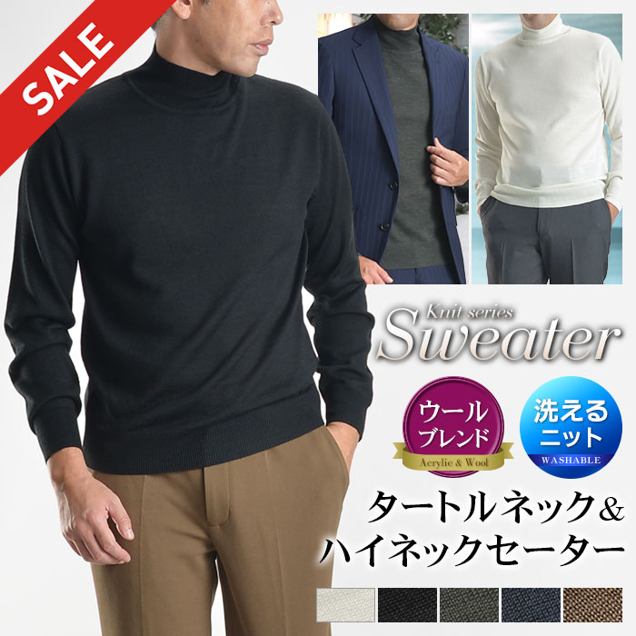 セーター ニット SUPER130 ウール タートル ニット ウォッシャブル メンズ