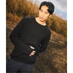 セーター ニット フェード アゼ クルーネック ニット 手洗い可能 メンズ