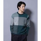 セーター ニット ブロックチェッククルーネックニット メンズ