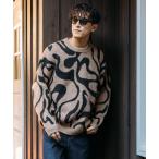 セーター ニット アート柄クルーネックニット1 シックカラー メンズ