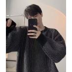 セーター ニット バスケット編み切り替えニットトップス メンズ