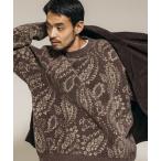 セーター ニット ペイズリー総柄 モール糸 クルーネックニット/リラックスフィット メンズ