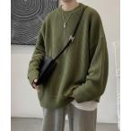 セーター ニット 「サイズ改良」カラーオーバーサイズ畦編みクルーネックニット メンズ レディース