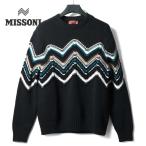 MISSONI / ミッソーニ ジグザグ柄ジャカードコットンウールクルーネックニット(US24WN0M) (ブラック基調マルチカラー)