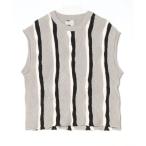 「FACTOTUM」 ストライプ柄ノースリーブニット 46 グレー メンズ